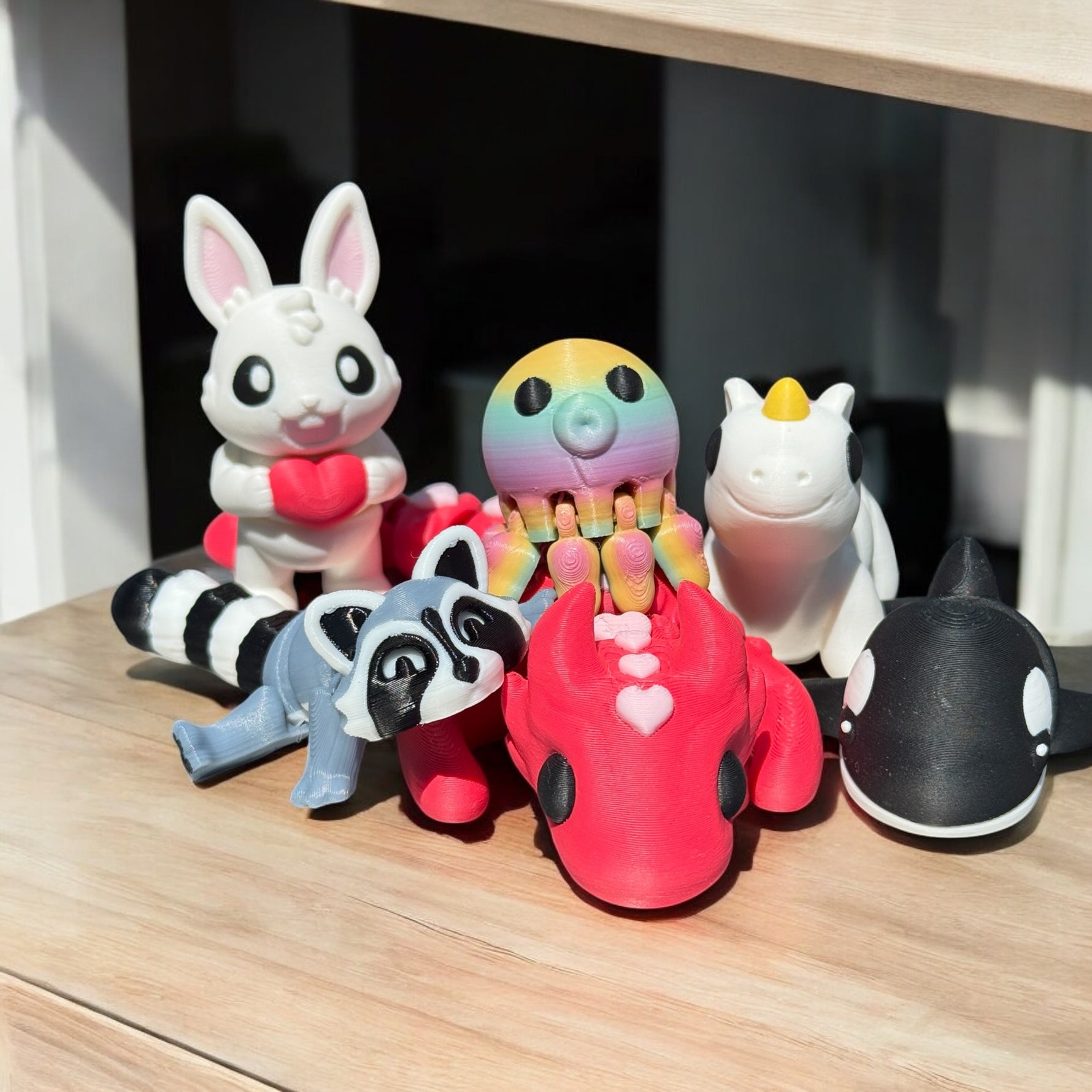 We're excited to unveil our latest collection designed with collectors and gift-givers in mind. From tiny flexible dinosaurs that captivate kids to quirky desk buddies that make coworkers smile, each piece is expertly 3D printed with quality filaments to bring wonder, laughter, and charm to every moment,